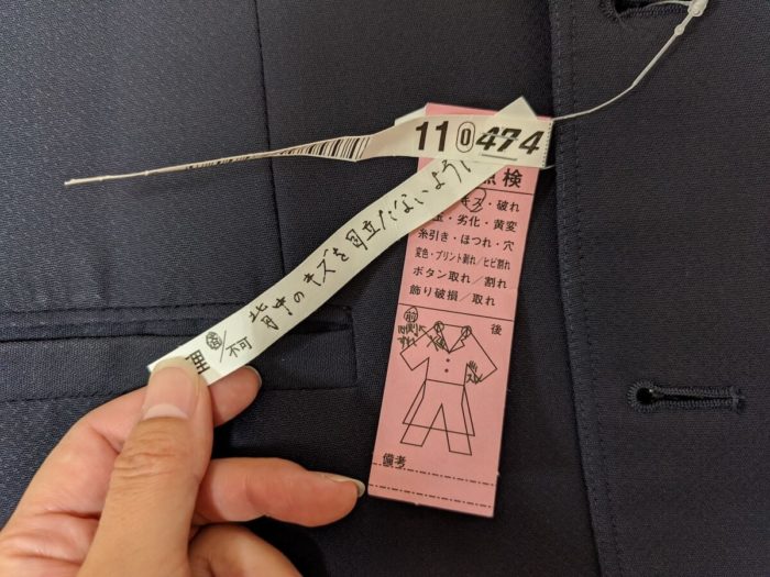 なんと、タグに背中の傷は「目立たないようにした」と書かれている!