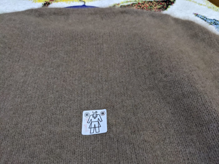 ちょっとわかりにくいですが、薄いシミのような汚れがあります。指示シールでキレイにしてほしいことを伝えました。